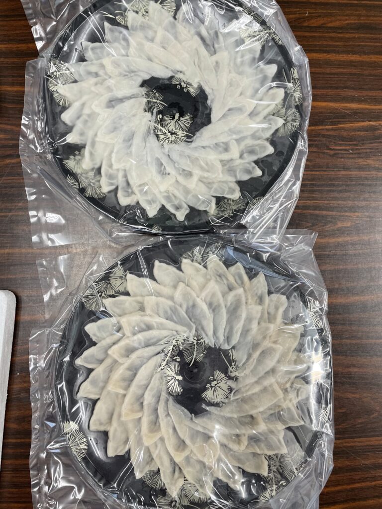 下の刺身は少し黄色い。味見では「。。。。。。。「問題ない」