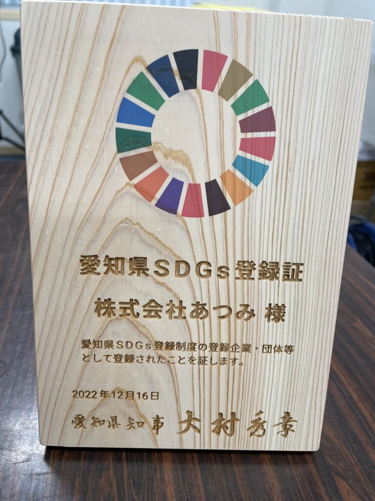 愛知県SDGs登録制度登録企業に登録いたしました!!