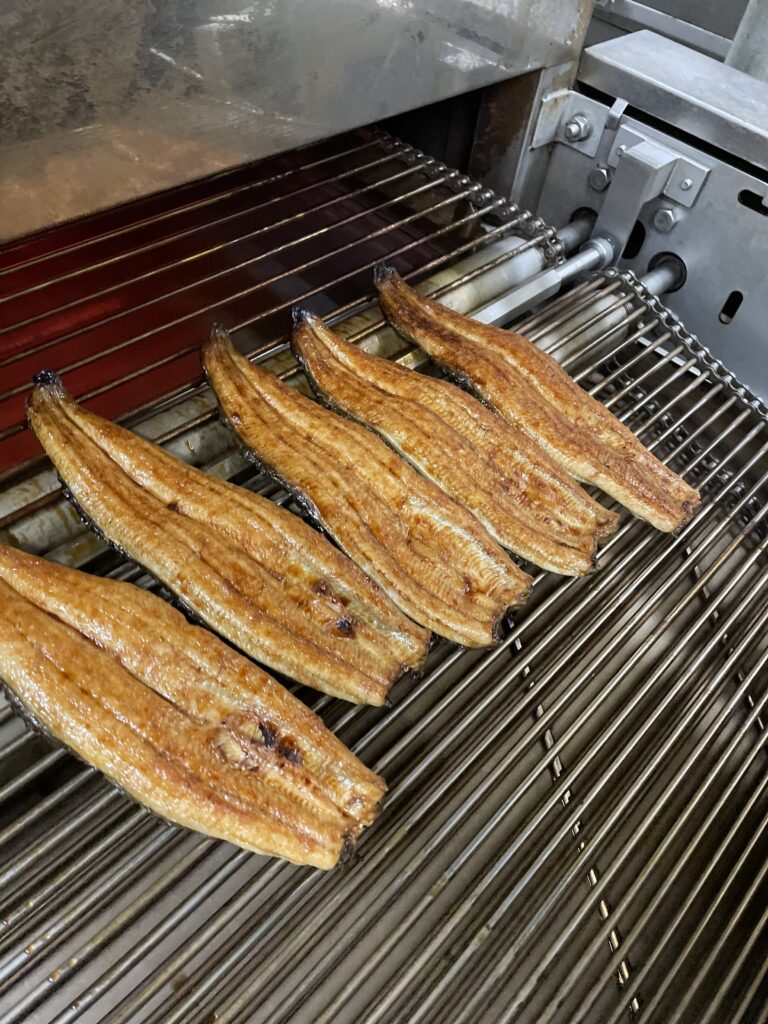 大村醤油石川氏、蒲焼の火加減を見ています。