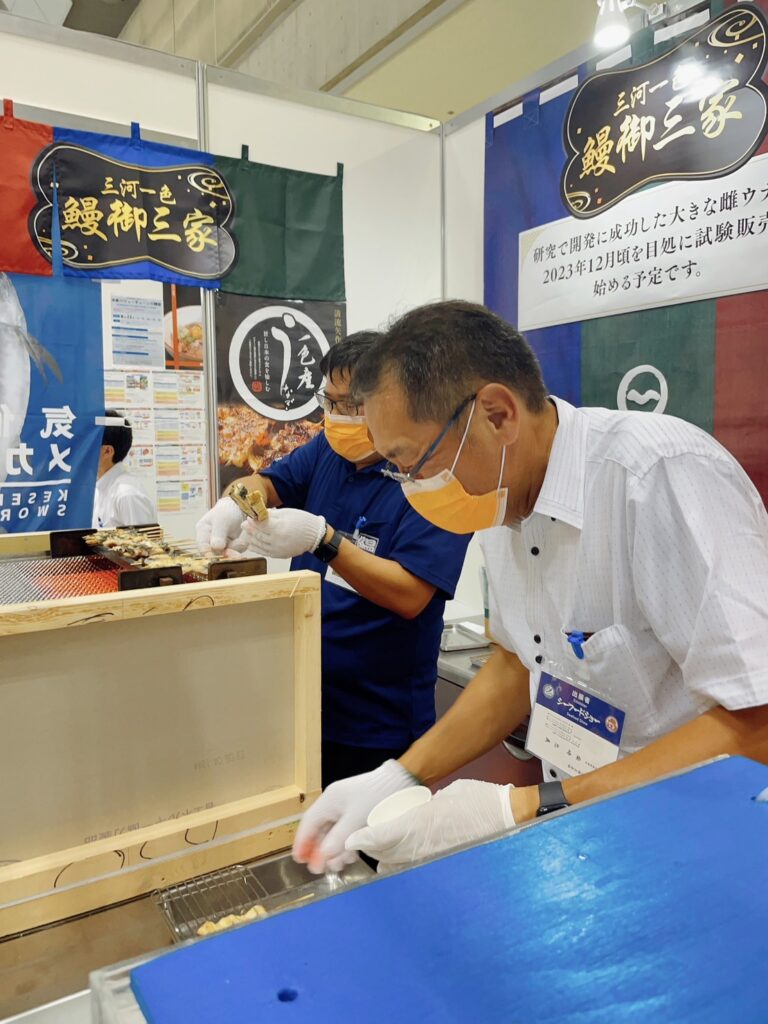 社長自ら鰻を焼いてお客さんに試食提供していました。