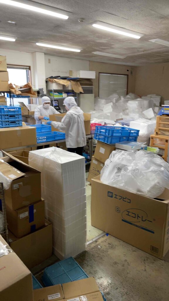 出荷担当。。。。。資材の山で見えませんが3人います!