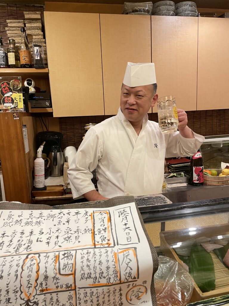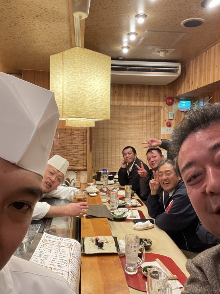 奥の3人組は下関の企業戦士!!意気投合してベロベロです。