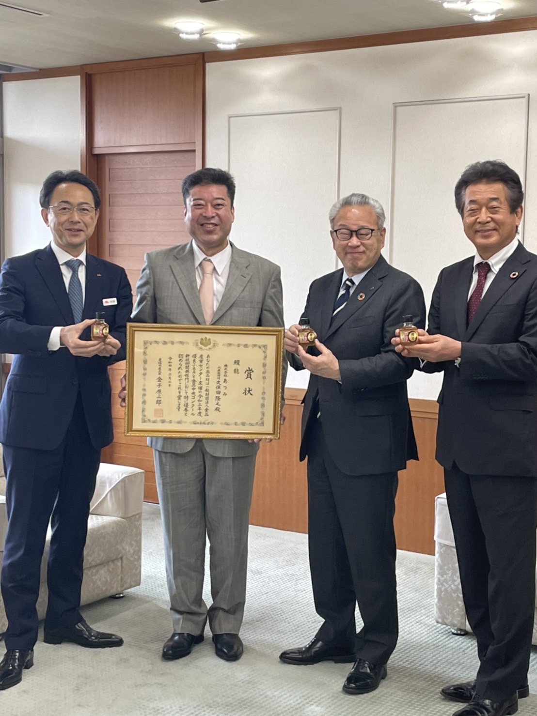 右から海みらい研究所 丸崎社長、浅井豊橋市長、あつみ久保田、イチビキ(株)中村社長。