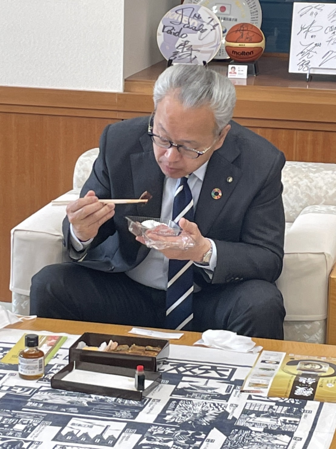 魚醤蒲焼、魚醤入り卵焼き、魚醤入りスイーツを試食して頂き。