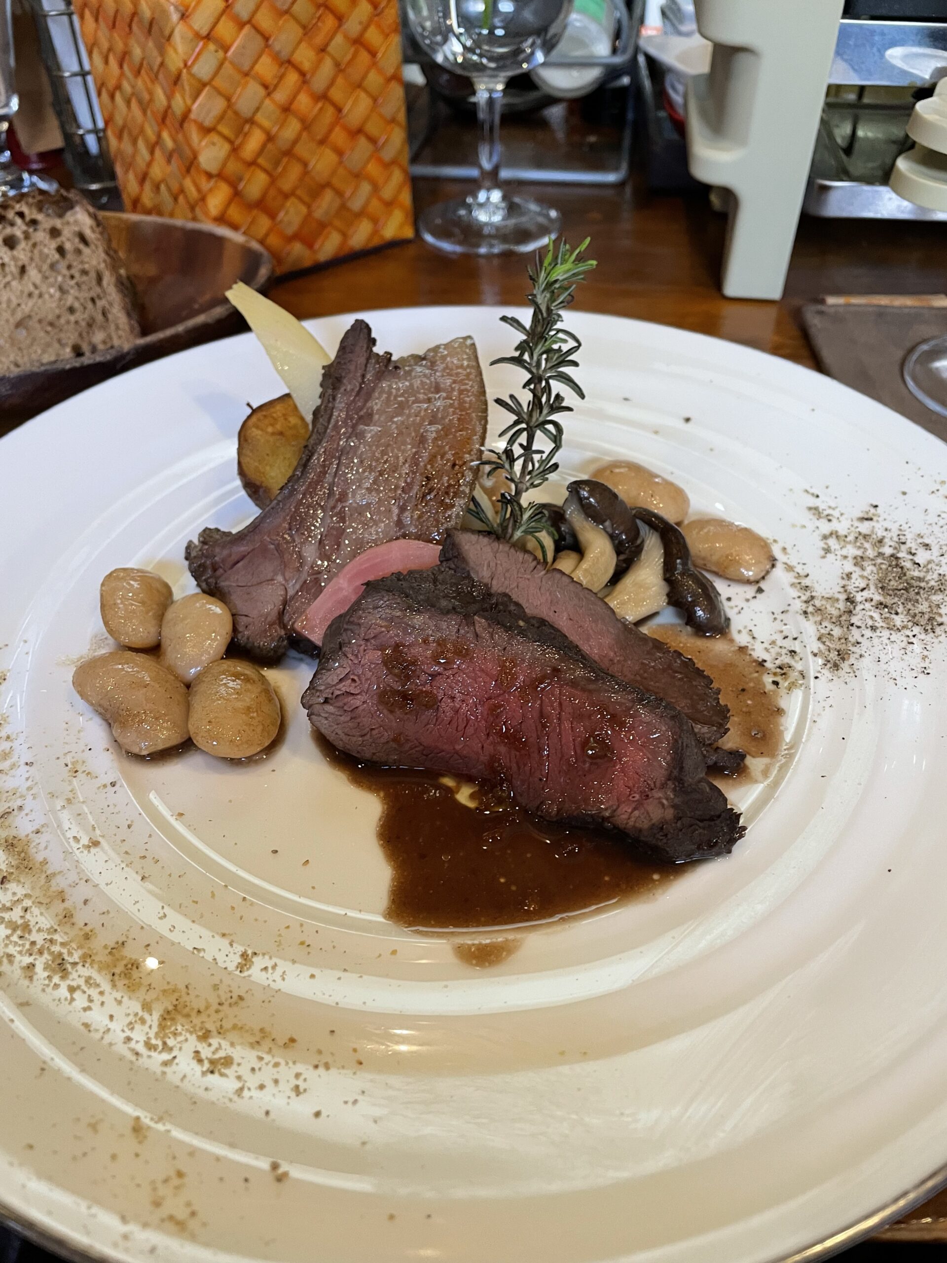 アナグマとエゾシカのステーキ。味わい深い。。。