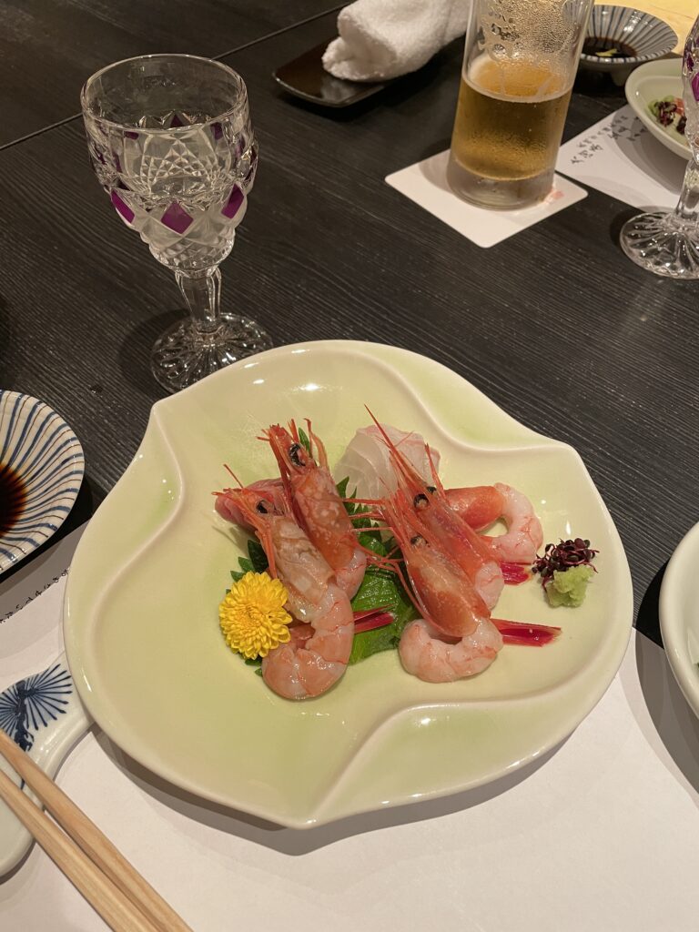 エビ三昧の刺し盛(ボタンエビ、甘えび、タカ海老)