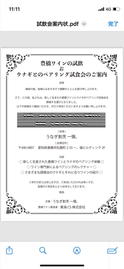 前回訪問したブドウ園のワインと鰻のコラボ。