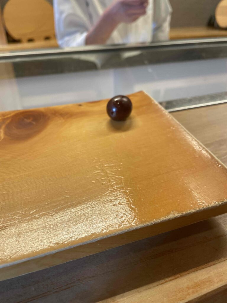 ウズラの卵を蒲焼のたれに「づけた」です。