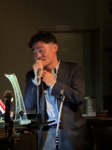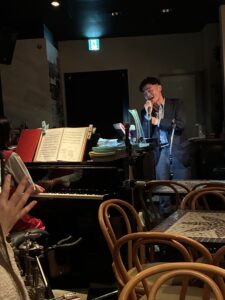 ピアノとサックスのバックバンドでのカラオケ。