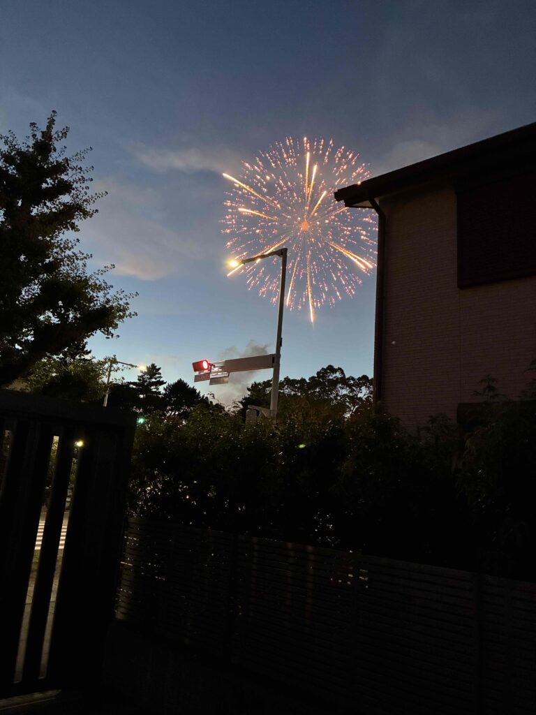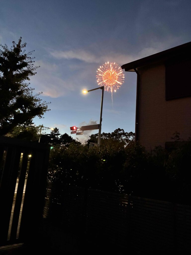 昼間うな丼を食べ、夜は花火を肴に一杯。。。。。。。