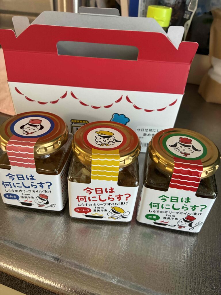 長田さんと長田さんプロデュース「シラスのオイル漬け」を持って、パチリ!