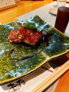 白焼きの身に鰻醤油「鰻能」を刷毛で塗って焼いてくれました。