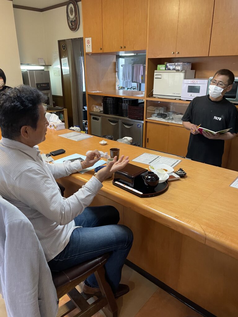 丸崎氏とうな丼を楽しんだ後、鈴木店長と丸崎氏が熱く鰻を語っていました。