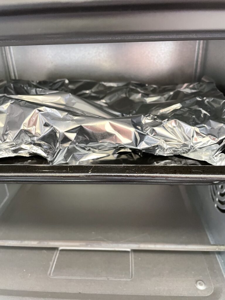 アルミホイールを敷き、更に、クッキングシートを敷く。そうすると焦げても貼りつかない。