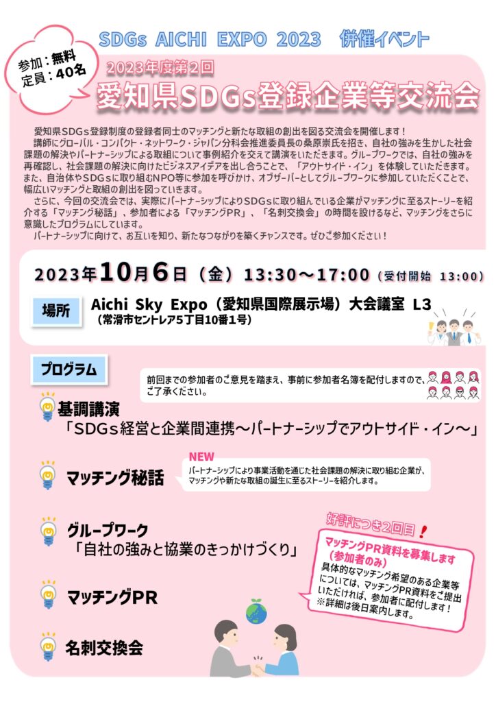 本日SDGsEXPO2023交流会 参加します。
