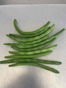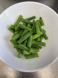 インゲンは、両端を切り捨てて、一口大に切っておく。