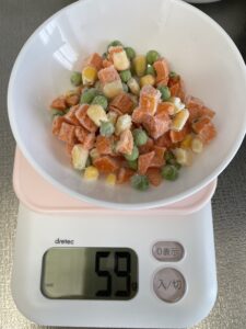 水カップ半分くらいを入れ、フライパンに蓋をして蒸し焼きにする。