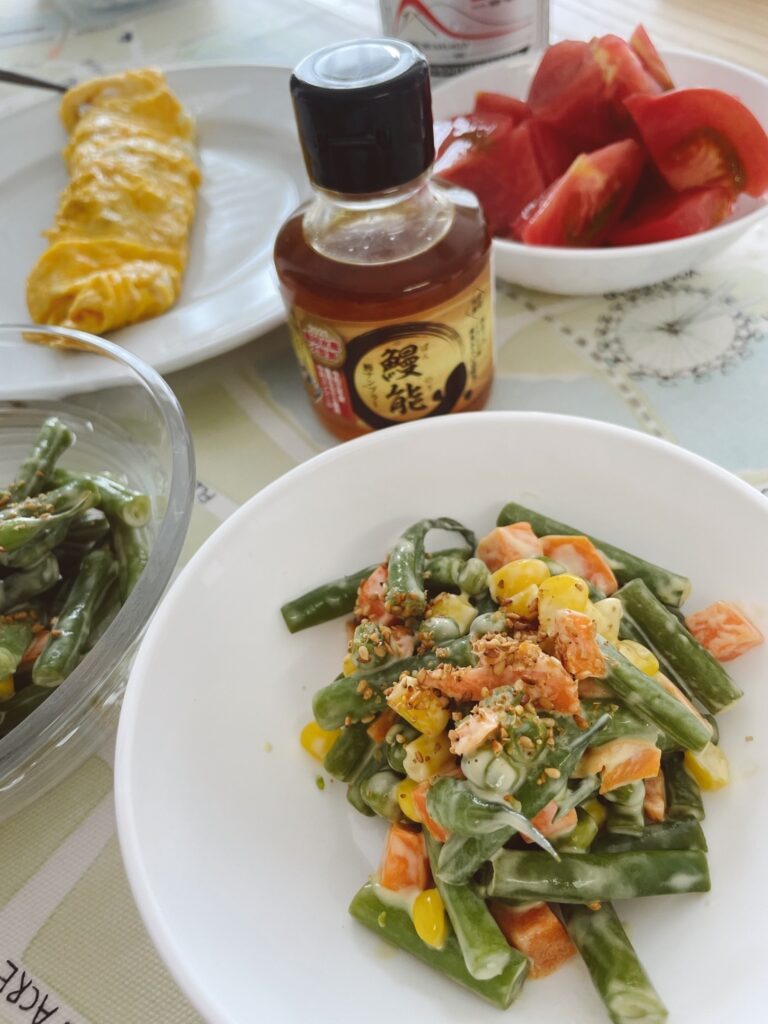 失敗 インゲン・マヨネーズ鰻醤油「鰻能」炒め (´;ω;`)ウゥゥ